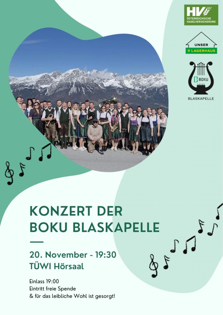 Die BOKU Blaskapelle (BBK) besteht in ihrer heutigen Form seit Herbst 2010. Aus einigen Studierenden und Lehrenden der Universität für Bodenkultur (BOKU) Wien, die auch davor schon gemeinsam musizierten, entstand ein Verein mit mittlerweile über 100 Mitgliedern. Mit grosser Begeisterung umrahmen wir Feste an der Uni und darüber hinaus. Unsere MusikantInnen kommen aus allen Bundesländern Österreichs, aus Südtirol und aus Deutschland.